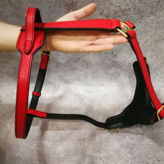 Leather Dog Harness, Leash and Nameplate Collar Set