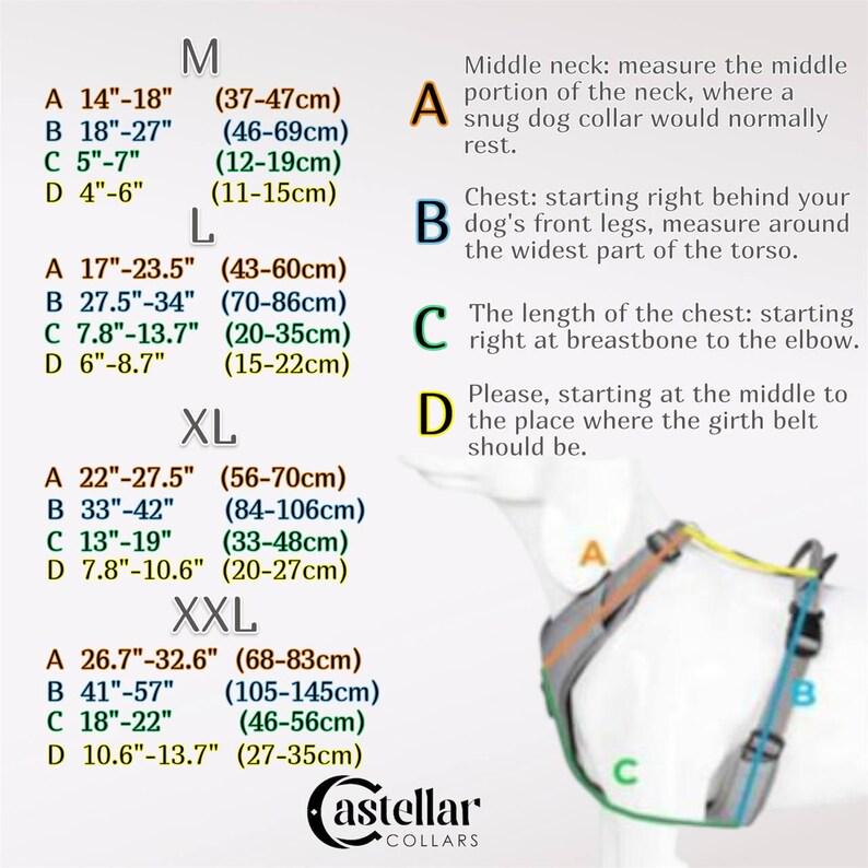 Choose your favorite color, pick the right size from the chart and add this leather dog harness to your cart to get a comfortable, durable upgrade for your dog.
