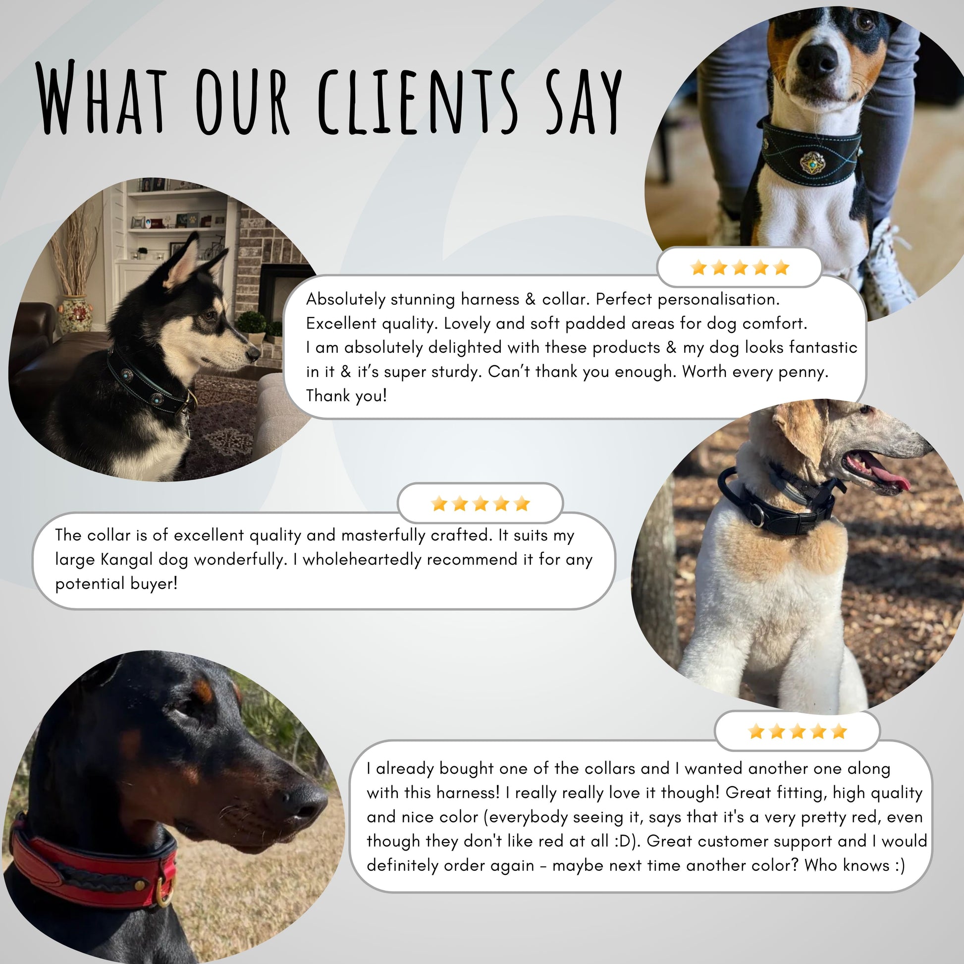 • All of the collars, leashes and harnesses are handmade