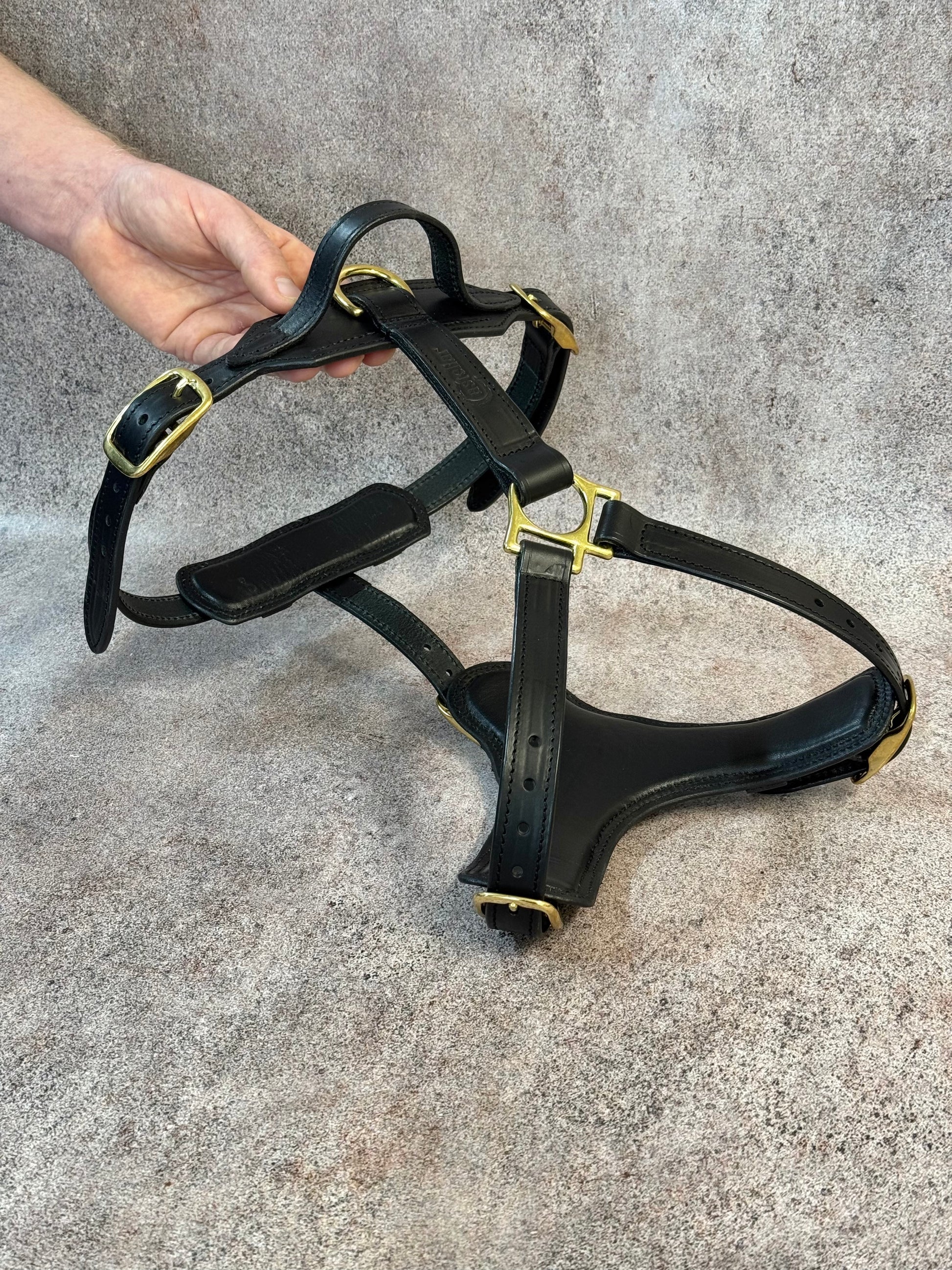 We can add custom personalization to your leather harness with a brass engraved nameplate according to your wishes. Personalization is free of charge—just contact us to create your unique piece!