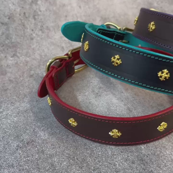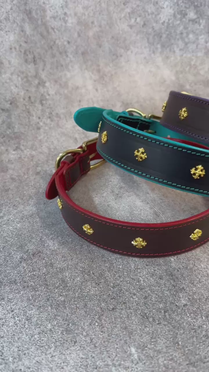 Royal Leather Dog Collar with Golden Plated Conchos 1.6 in Wide